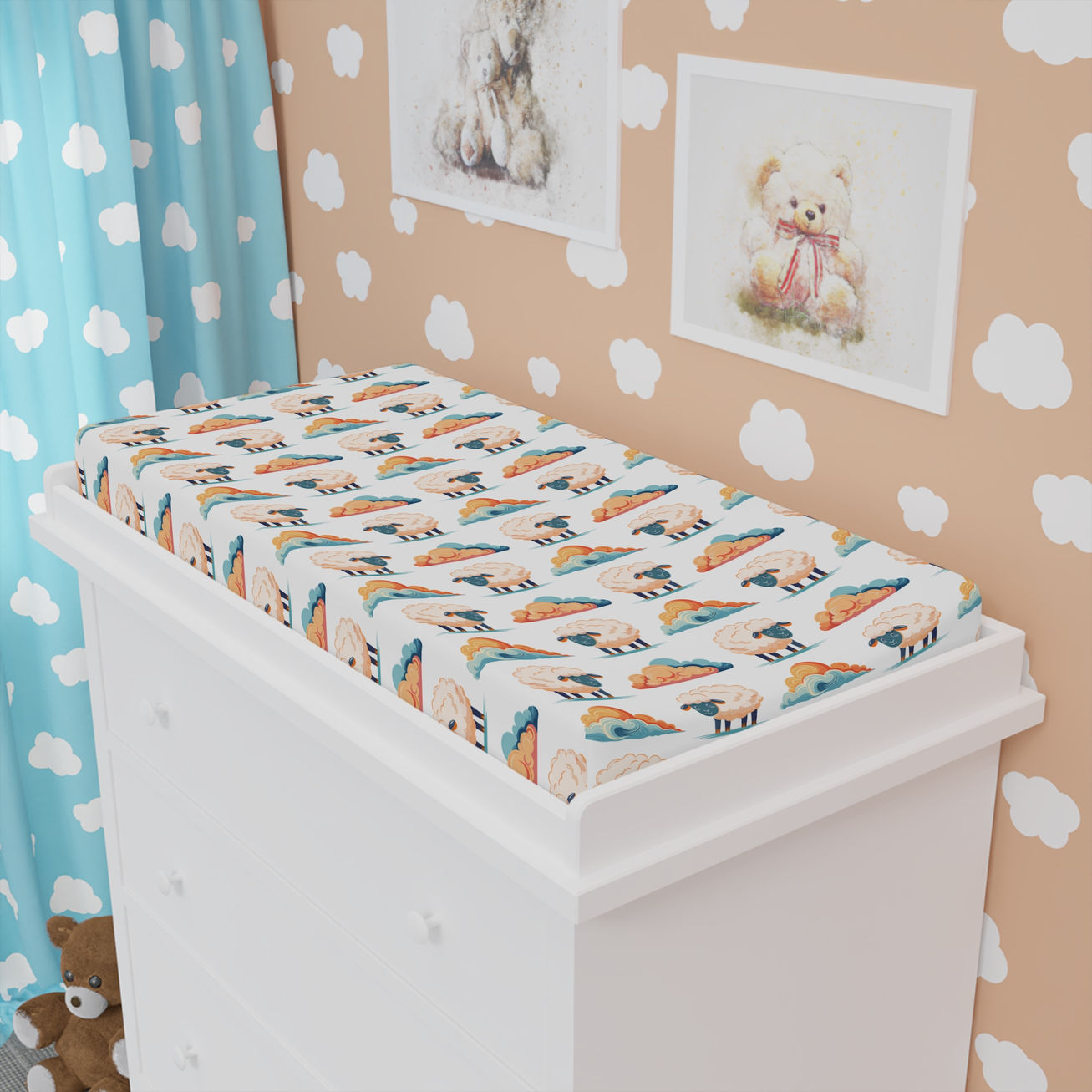 Sheep-toon Baby Changing Pad Cover - Soft Cotton Nursery Accessory