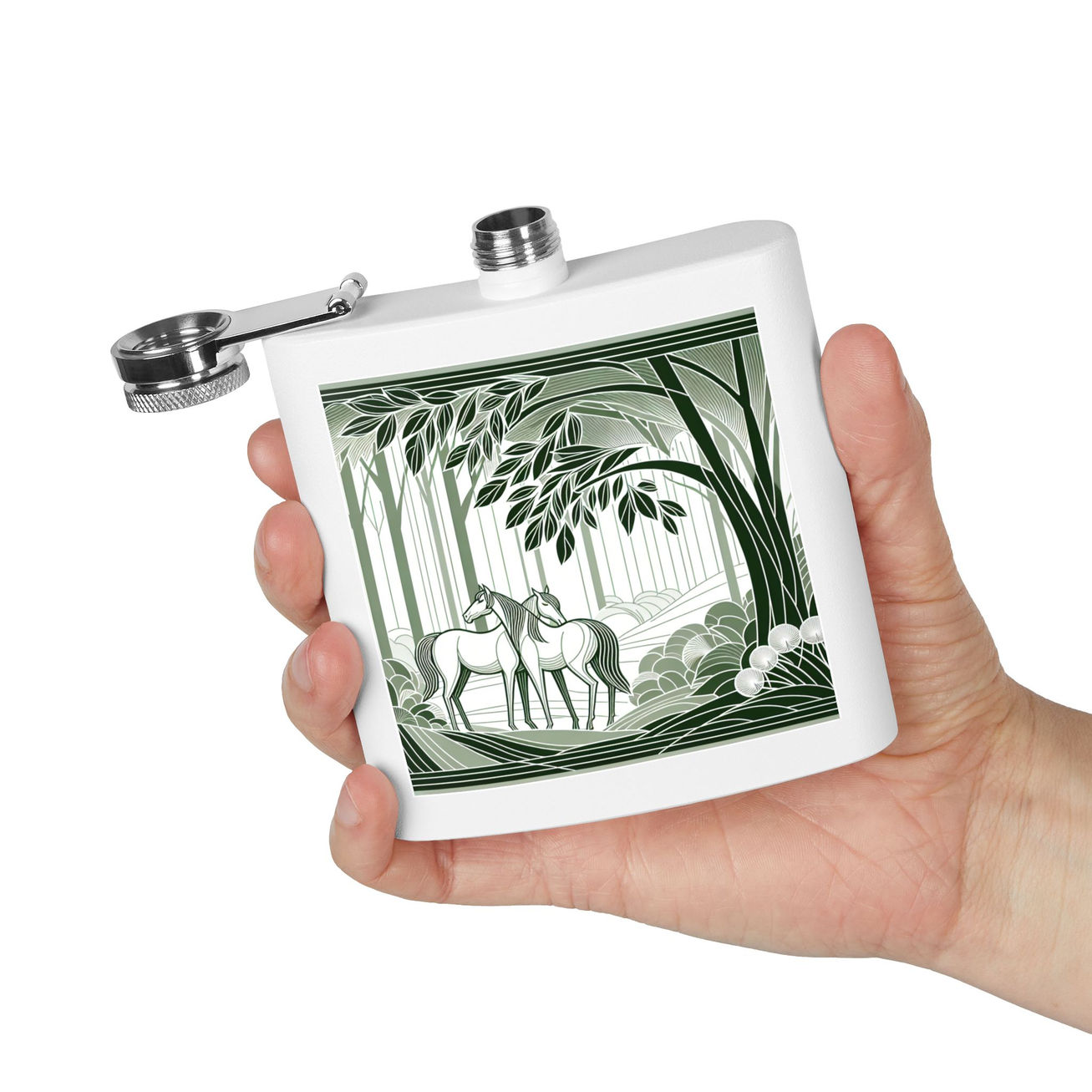 Woodland Horses Stainless Steel Flask - 6oz, Perfect Gift for Horse Lovers